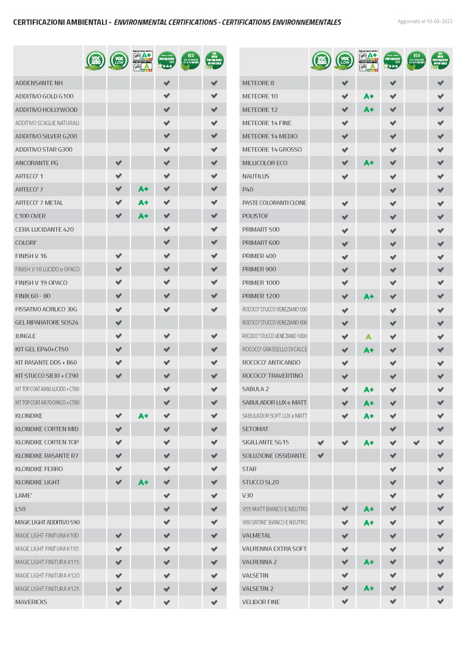 Společnost VALPAINT S.p.A. je již několik let v souladu se zelenou filozofií se věnuje tomuto velmi důležitému tématu. Již v roce 2006 získala Certifikaci kvality ISO 9001, ke které v roce 2009 přibyla Environmentální certifikace ISO 14001 za respektování životního prostředí ve výrobních procesech.